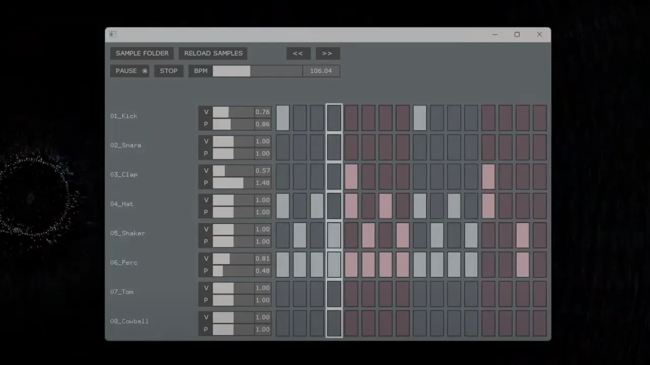 An audio tool prototype that sequences samples on a BPM timeline with real-time controls and a dynamically resizing grid UI.